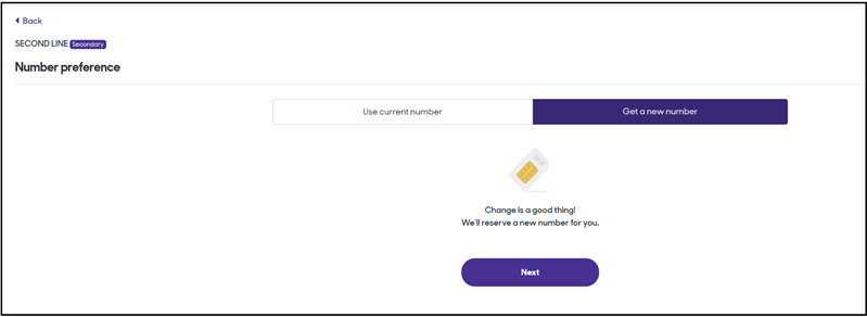 - Number Preference: Always choose Get a new number. During the activation process, the customer will change this to a ported number